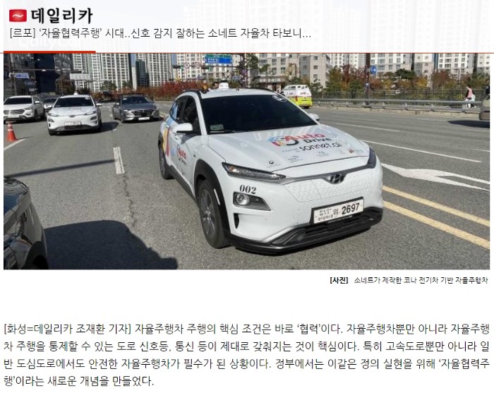 [르포] ‘자율협력주행’ 시대..신호 감지 잘하는 소네트 자율차 타보니...