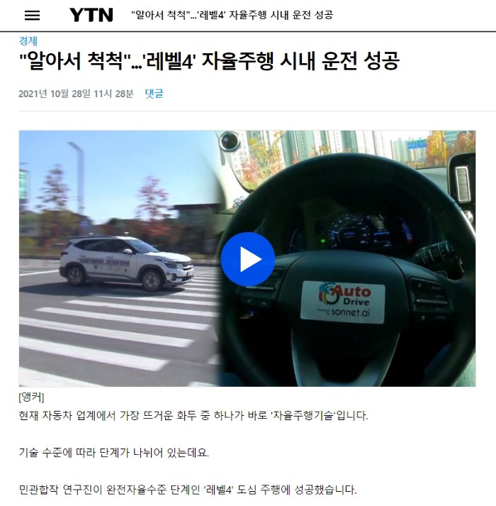 [Sonnet.ai in News] 도심도로 자율협력주행
