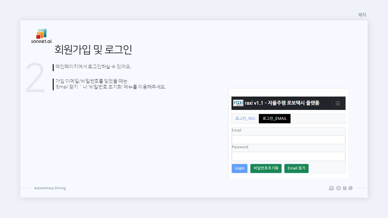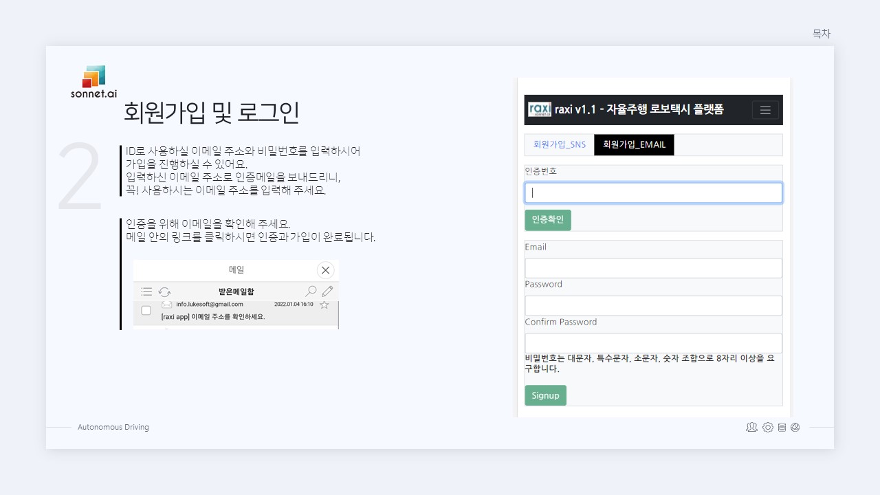 | 자율주행 로보택시 Raxi 이용 안내 ① 회원가입 및 로그인(Email) (0) | 2022.03.28 |