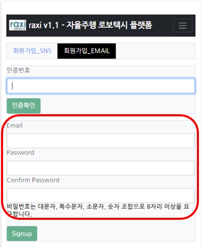 자율주행 로보택시 Raxi 이용 안내 ① 회원가입 및 로그인(Email)