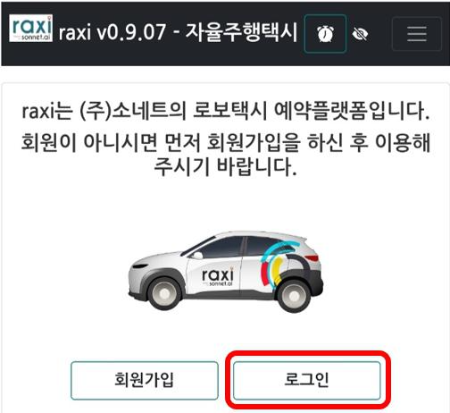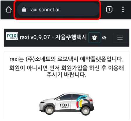 Sonnet.ai의 자율주행 로보택시 서비스 Raxi 이용을 도와드리겠습니다.