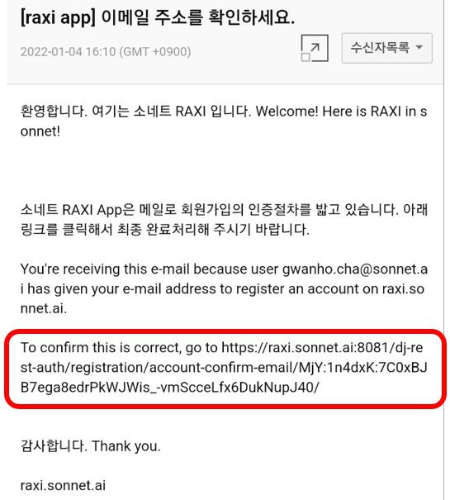 1. 사용하시는 인터넷 브라우저 주소창에 raxi.sonnet.ai를 입력해주세요.