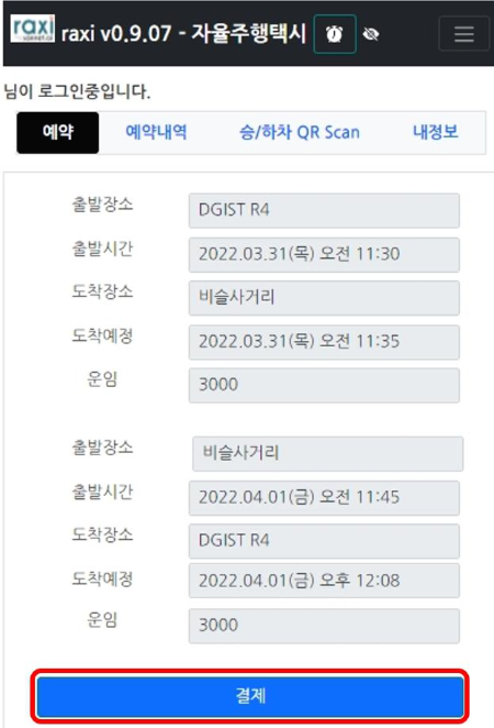 자율주행 로보택시 Raxi 이용 안내 ② 예약하기