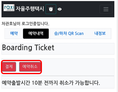 탑승 시 안전운전자에게 예약내역 페이지의 QR코드를 제시해주세요.
