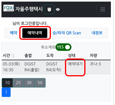 탑승 시 안전운전자에게 예약내역 페이지의 QR코드를 제시해주세요.
