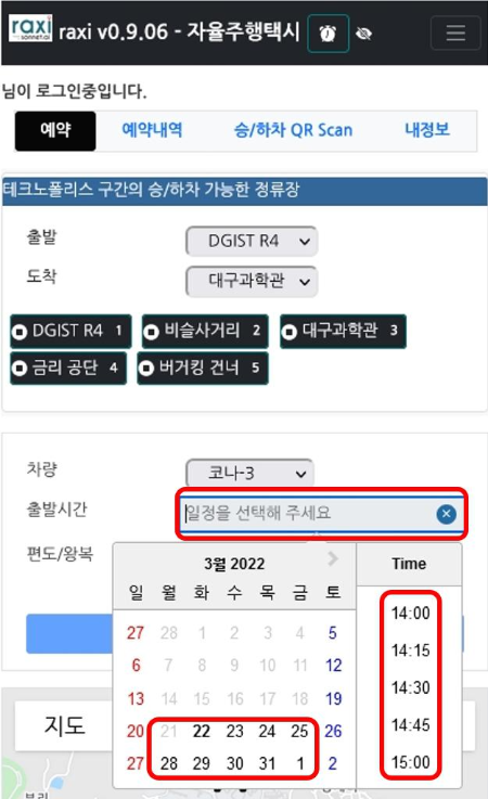 자율주행 로보택시 Raxi 이용 안내 ② 예약하기